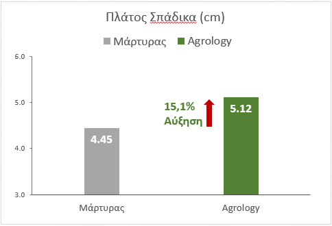 Αύξηση Διαμέτρου Σπάδικα: +0,67 cm ή 15,1%