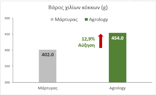 Αύξηση Βάρους χιλίων κόκκων Καρπού: +52 g ή 12,9%