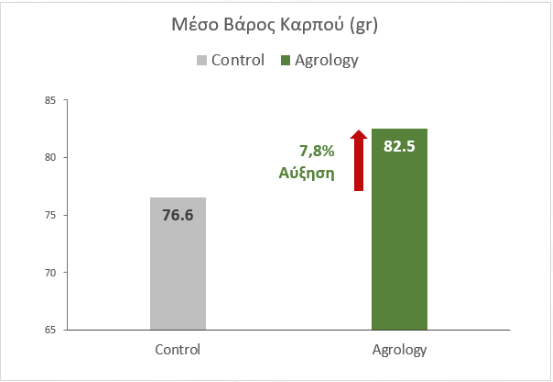 Αύξηση Μέσου Βάρους Καρπού: +8% ή 6 g