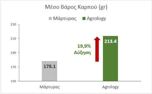 Αύξηση Μέσου Βάρους Καρπού: +19,9% ή 35,4 g