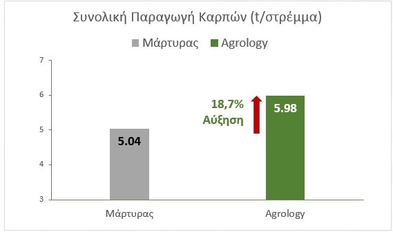 Αύξηση Συνολικής Παραγωγής: +18,7% (+0,94 t/ στρέμμα)
