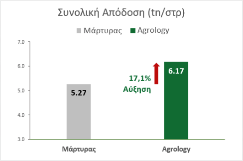 Αύξηση Συνολικής Παραγωγής: +17,1% (+899 kg/ στρέμμα)