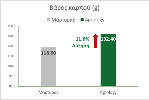 Αύξηση Μέσου Βάρους Καρπού: +11,6% (+13,8 g)