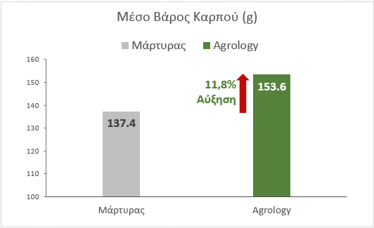 Αύξηση Μέσου Βάρους Καρπού: +11,8% ή 16,2g*