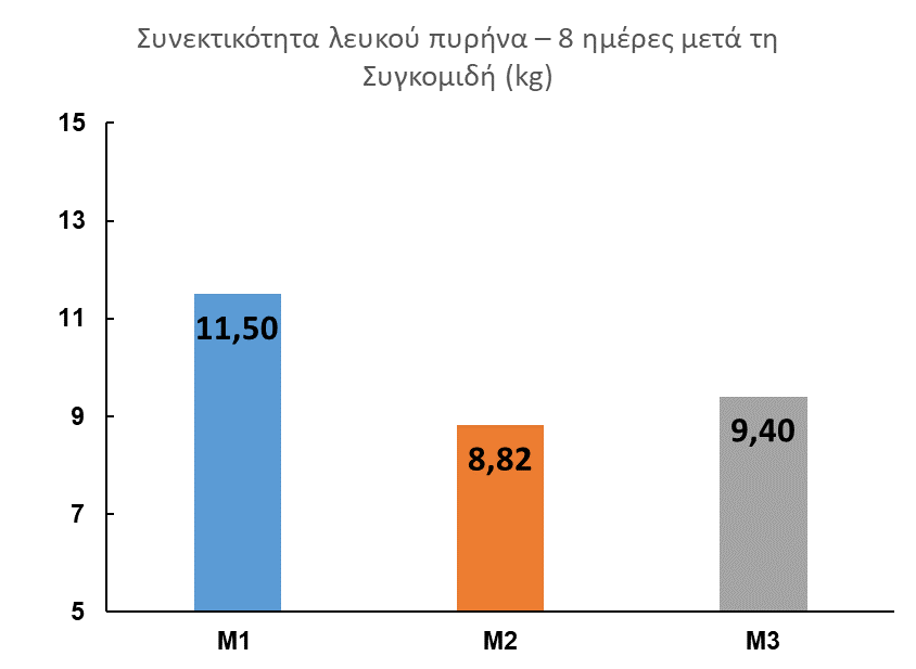 Εικόνα 7. Συνεκτικότητα λευκού πυρήνα (kg, )8 ημέρες μετά τη Συγκομιδή στις 3 μεταχειρίσεις