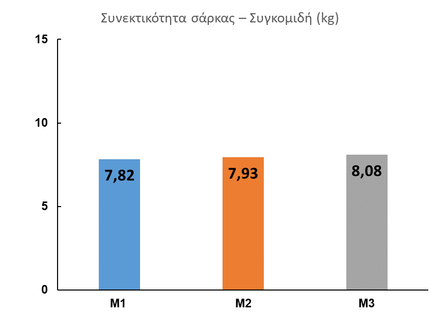 Εικόνα 4. Συνεκτικότητα Σάρκας καρπού(kg) κατά τη Συγκομιδή  στις 3 μεταχειρίσεις